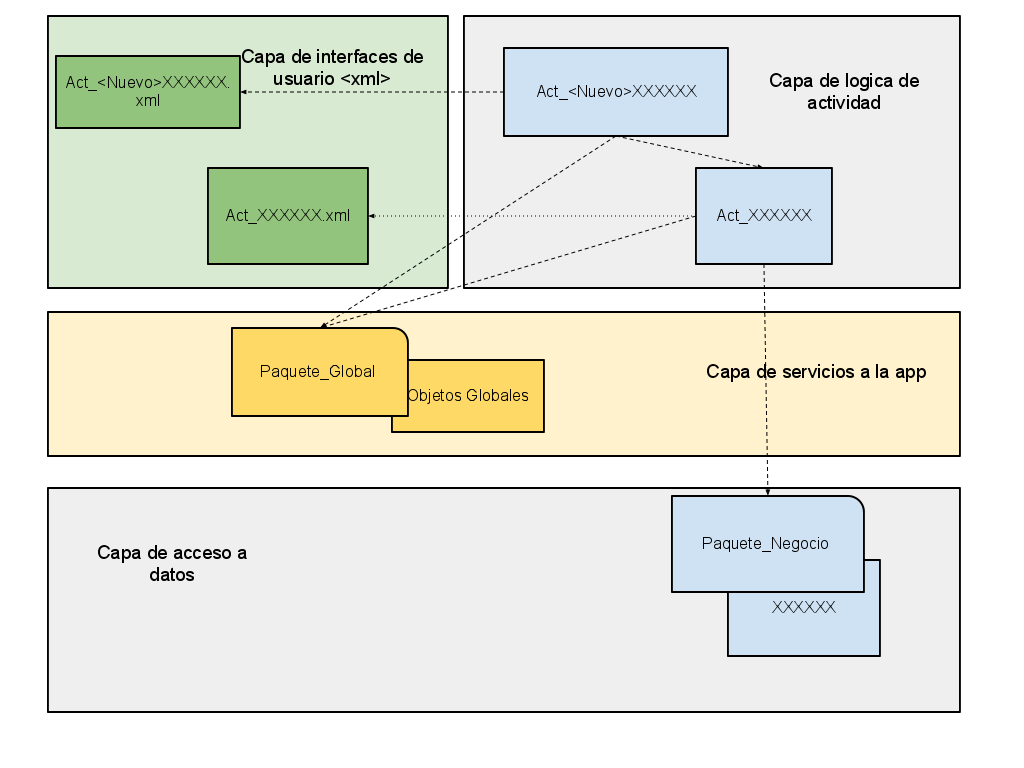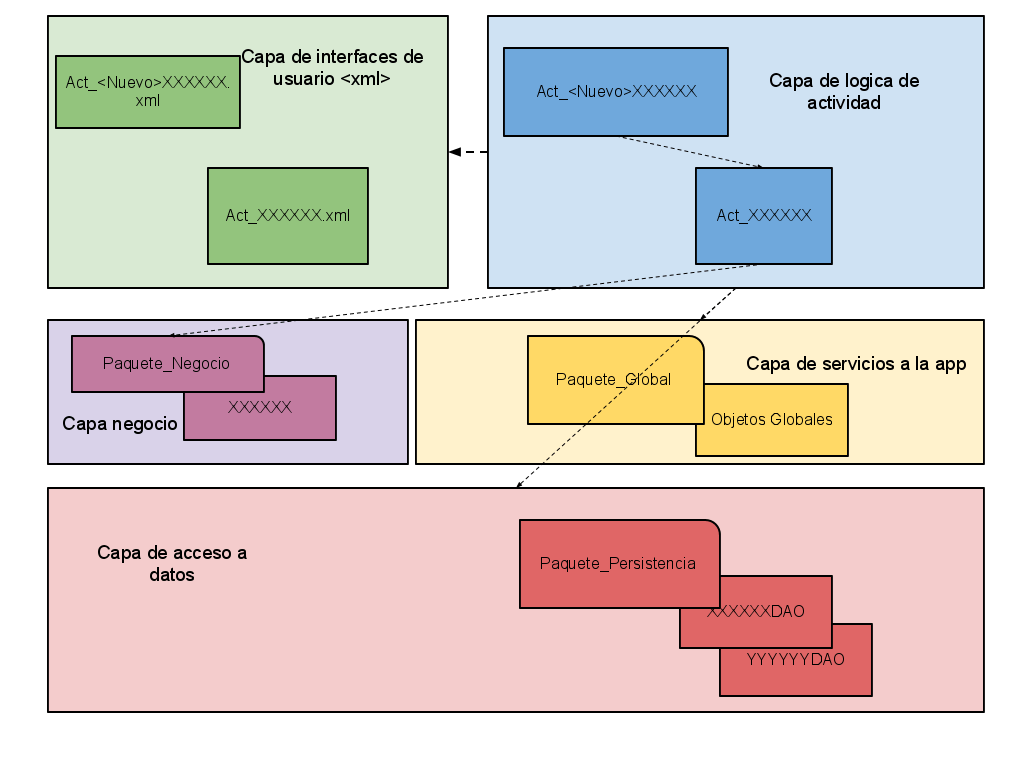 Retomando un poco sobre el asunto de la arquitectura que vimos en su día cuando planteabamos el proyecto, quiero mostraros un ejemplo de aquella idea. En este diagrama podemos apreciar cómo estoy realizando el control desde la capa de presentacion hasta la capa de datos: